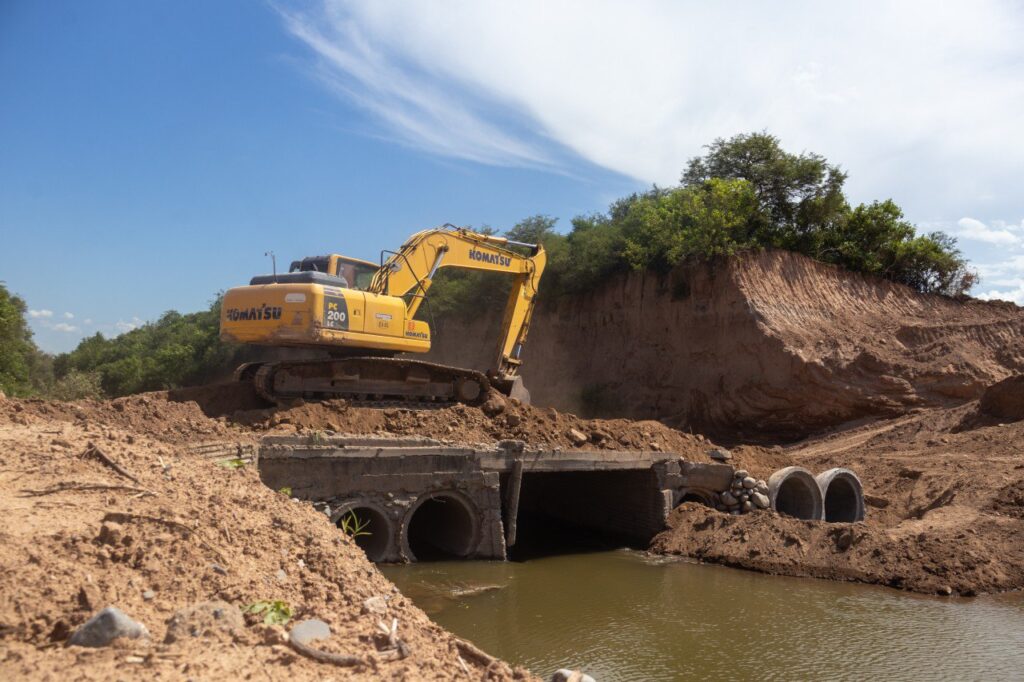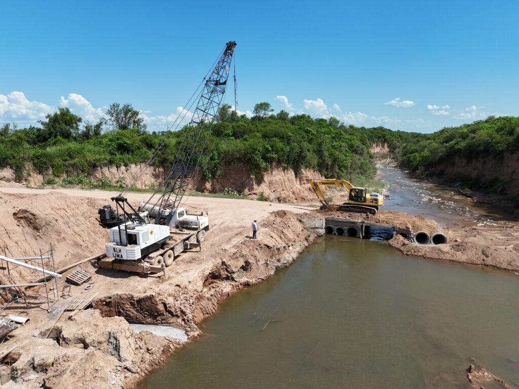 Pese a las intensas precipitaciones registradas recientemente, que afectaron temporalmente el desvío alternativo, la empresa contratista y el personal del Ministerio mantienen la operatividad en el frente de obra principal.